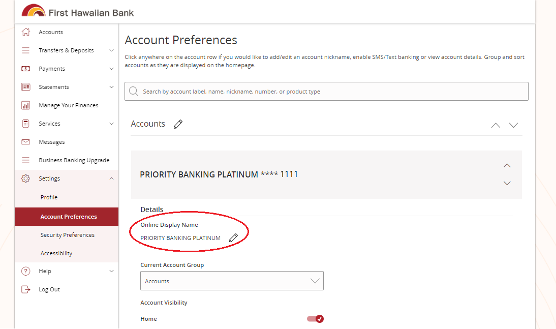 Adding Special Characters to an account nickname may cause errors with external transfers and sending money with Zelle®.